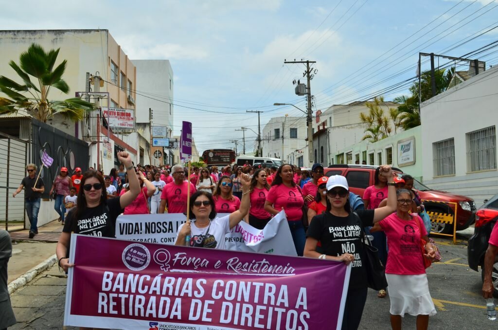 Neste 8 de Março, Dia Internacional da Mulher, o Sindicato dos Bancários de Vitória da Conquista e Região compôs, juntamente com outras entidades sindicais e movimentos sociais, a Marcha das Mulheres por Mais Direitos, Democracia, Resistência e Luta Feminista.